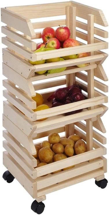 Home Kitchen Wooden Vegetable Fruit Storage Basket Rack Holder